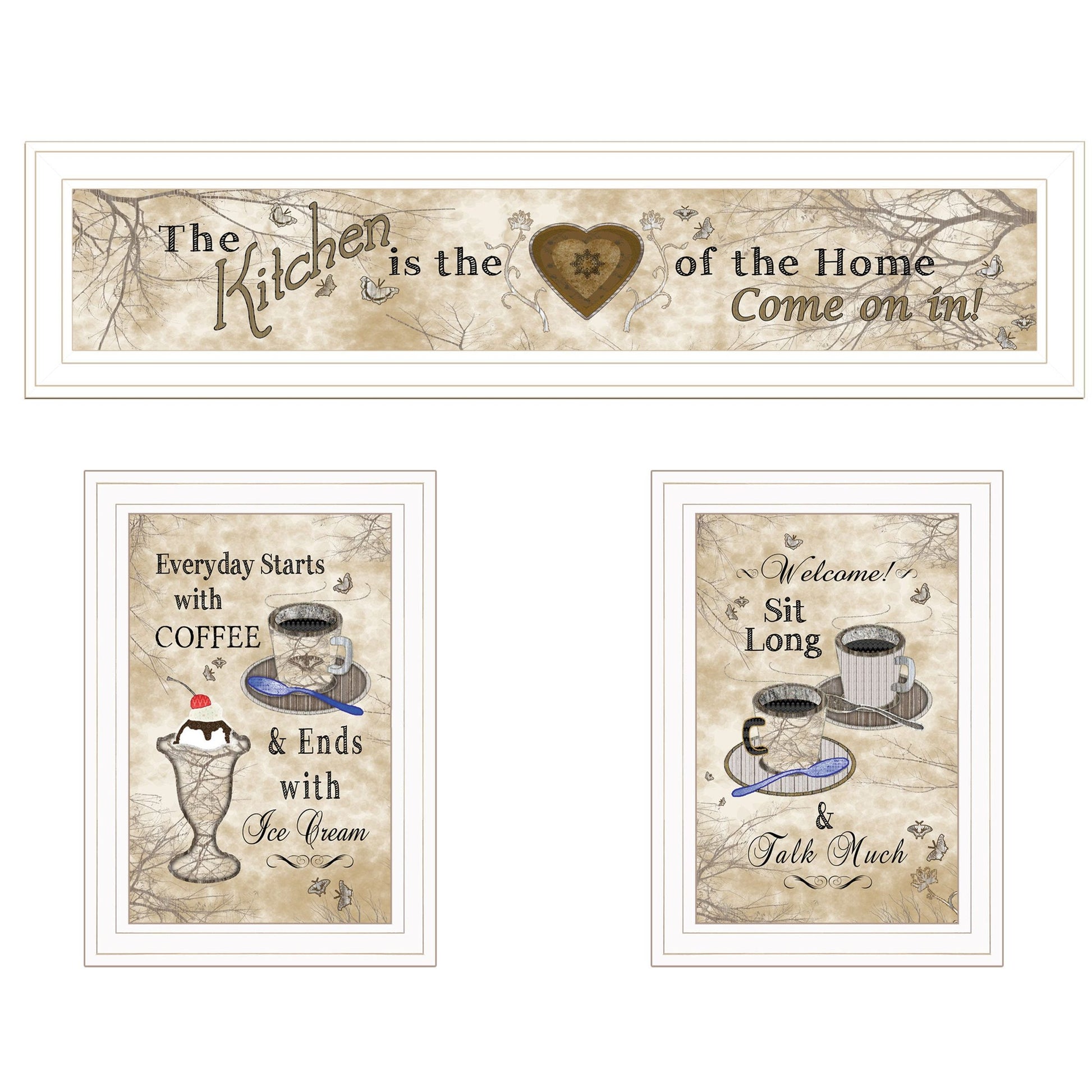 'Love of Nature Kitchen' 3-Piece Vignette By Trendy Decor 4U, White Frame