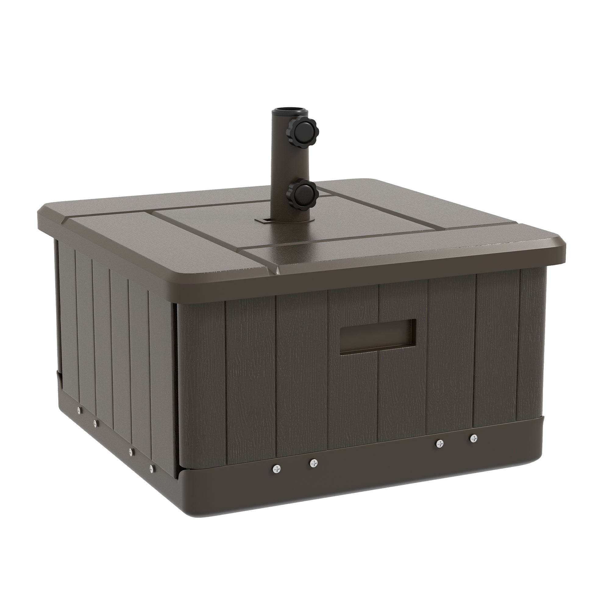- 3 in 1 Design: More than an ordinary umbrella stand, this 3-in-1 functions as an outdoor end table, an umbrella base, and a flower box planter when you remove the lid. Featuring a wood-like texture on top, this versatile piece adds rustic charm to all sorts of outdoor spaces.