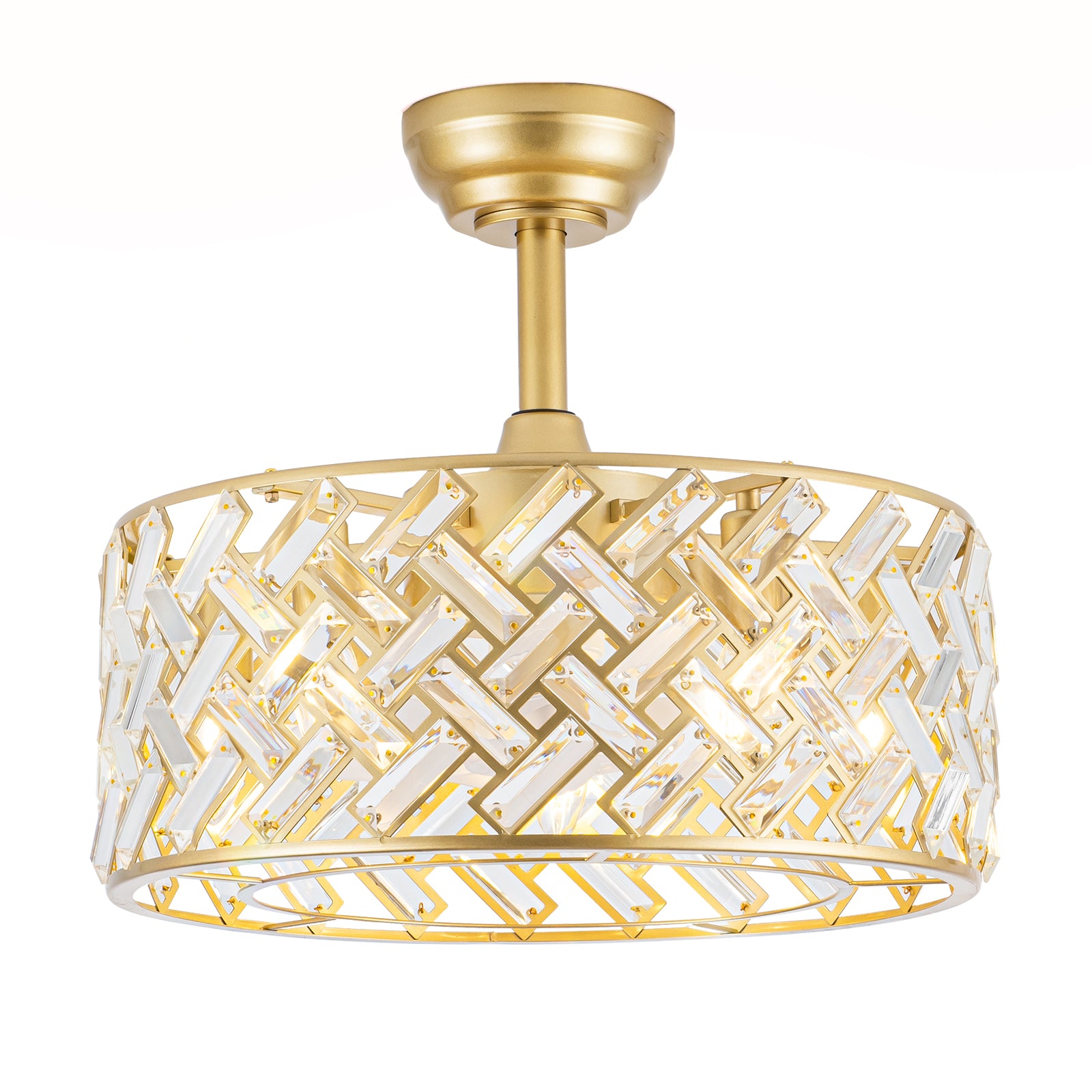 18'' Crystal Cage Ceiling Fan With Remote Control ,Quiet Motor Fan Light ,, Indoor Crystal Chandelier Ceiling Fan For Bedroom, Living room, Dinning Room, Kids Room--Gold (bulbs not included.)