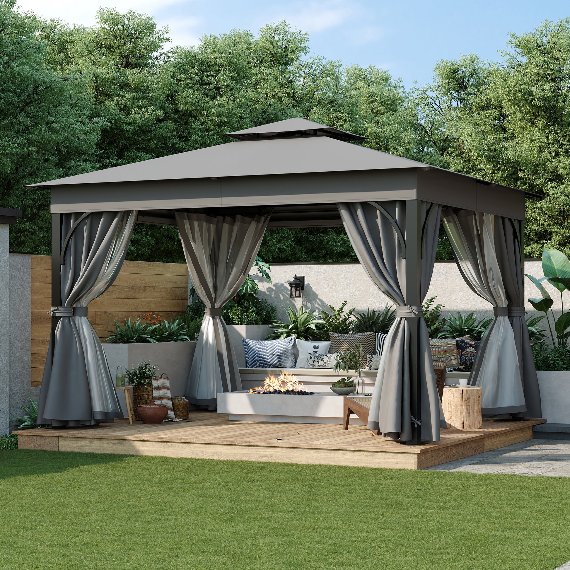 TREXM 10x12 Outdoor Gazebo Tent with Double Roofs, Patio Gazebo with Mosquito Netting and Privacy Screens, Patio Canopy for Shade and Rain for Backyard, Garden, Lawn and Deck (Grey)