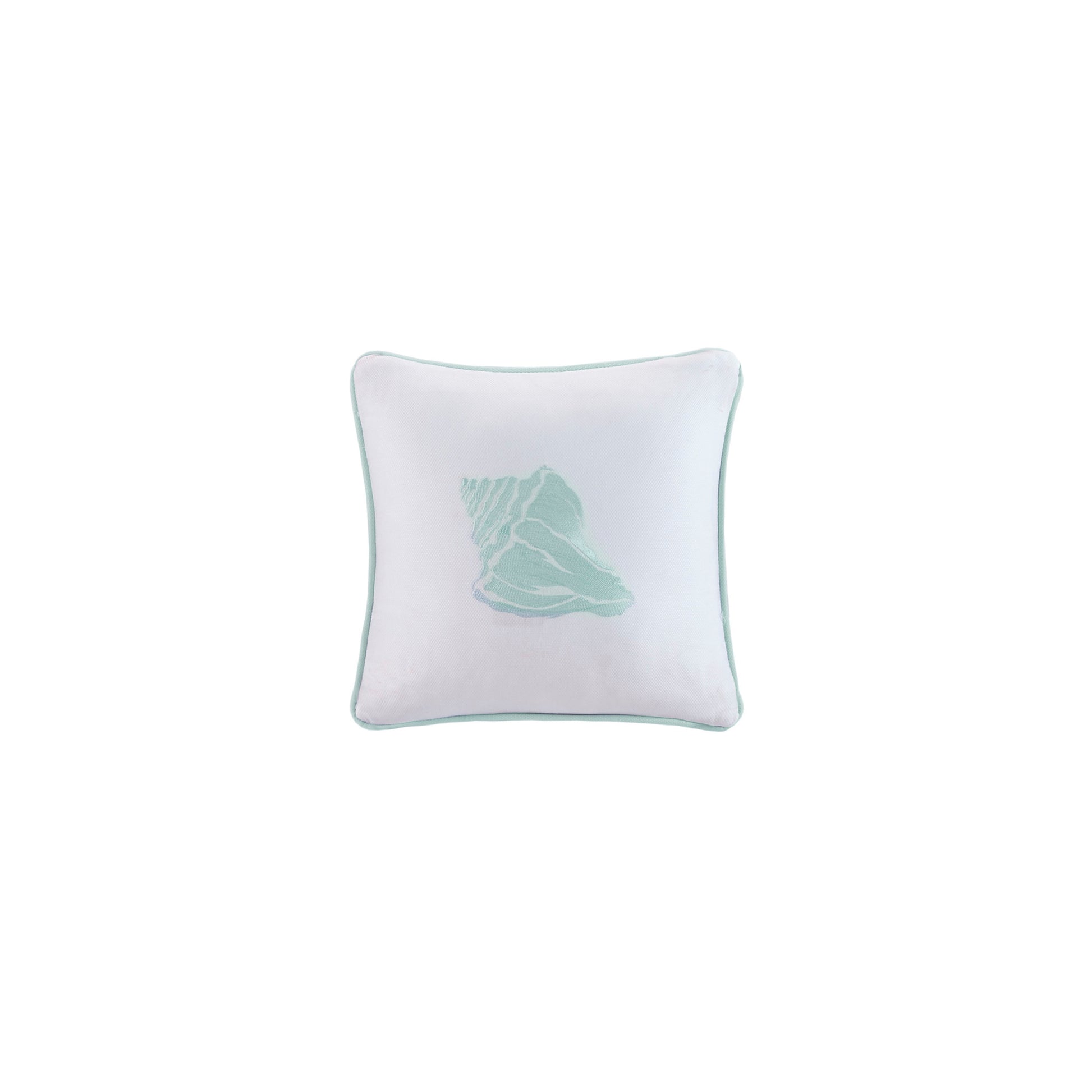 Bring a bit of sea side inspiration into your home with this beautiful bedding collection. The Harbor House Coastline collection features an intricate white coral motif embroidered on an aqua background finished with a pieced white border. Made of 100% cotton jacquard, this 16x16 inch square pillow is an accessory to the Coastline bedding collection and features an aqua embroidered conch shell on white background with aqua piping.