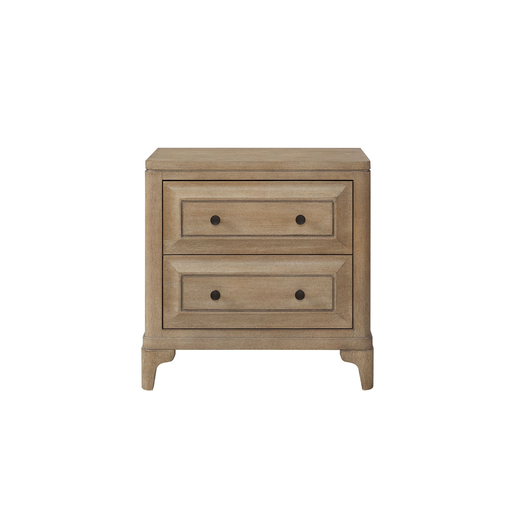 Elegant 2 Drawer Nightstand with USB Ports in Sand Finish Solid Wood MDF