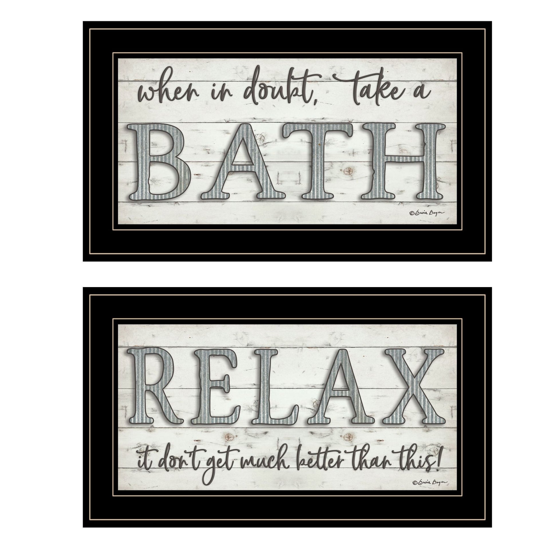 'Bath Relax' 2-Piece Vignette By Susie Boyer, Ready to Hang Framed Print, Black Frame