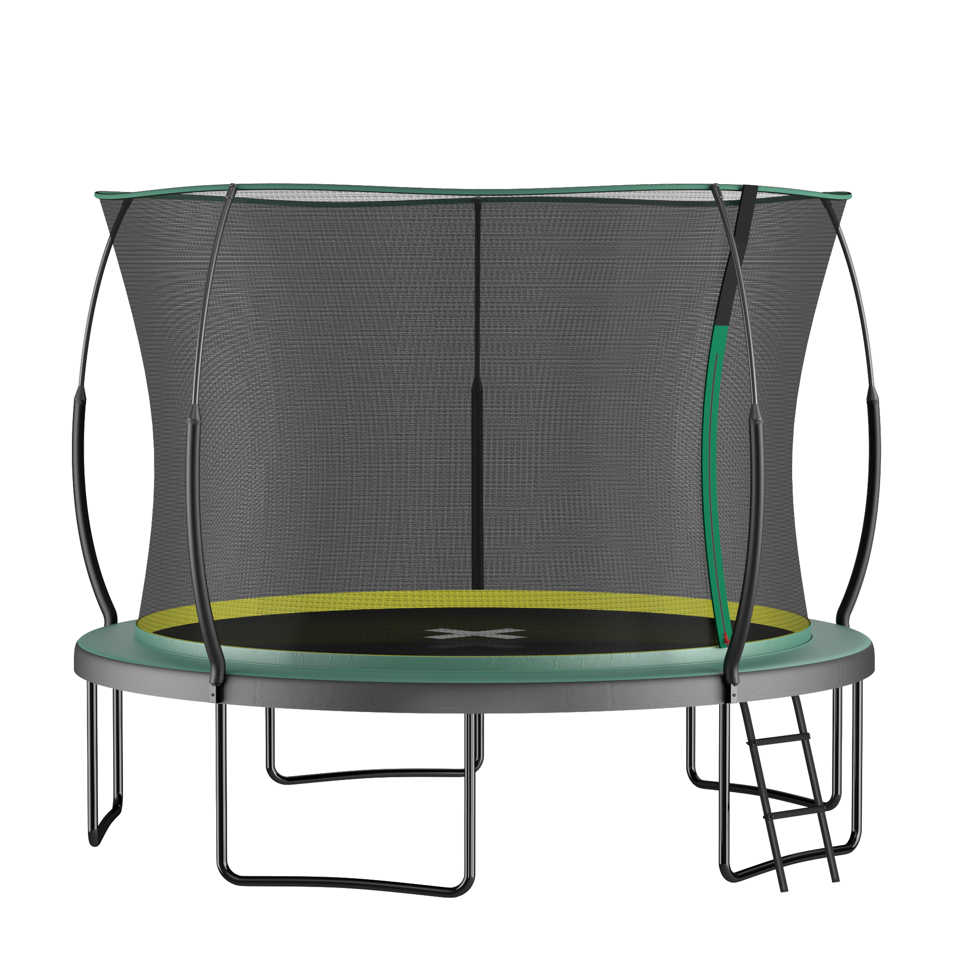 - Our outdoor trampolines have galvanized steel frames, the legs and T-connectors powder coated for long time anti-rust outside. ensuring durability, weather resistance, and rust prevention.Equipped with 5 W-shaped leg tubes, it offers enhanced stability and sturdiness.