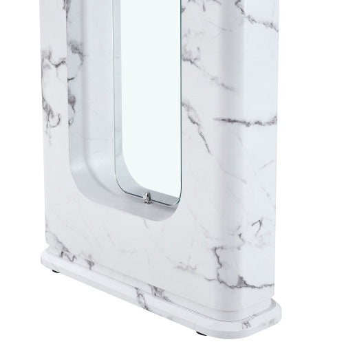 - Unique table leg design: Two U-shaped MDF table legs, with a 19 inch high tempered glass inserted into the hollow part in the middle, not only increase the transparency of the dining table, but also visually reduce the heaviness, unique and beautiful.
