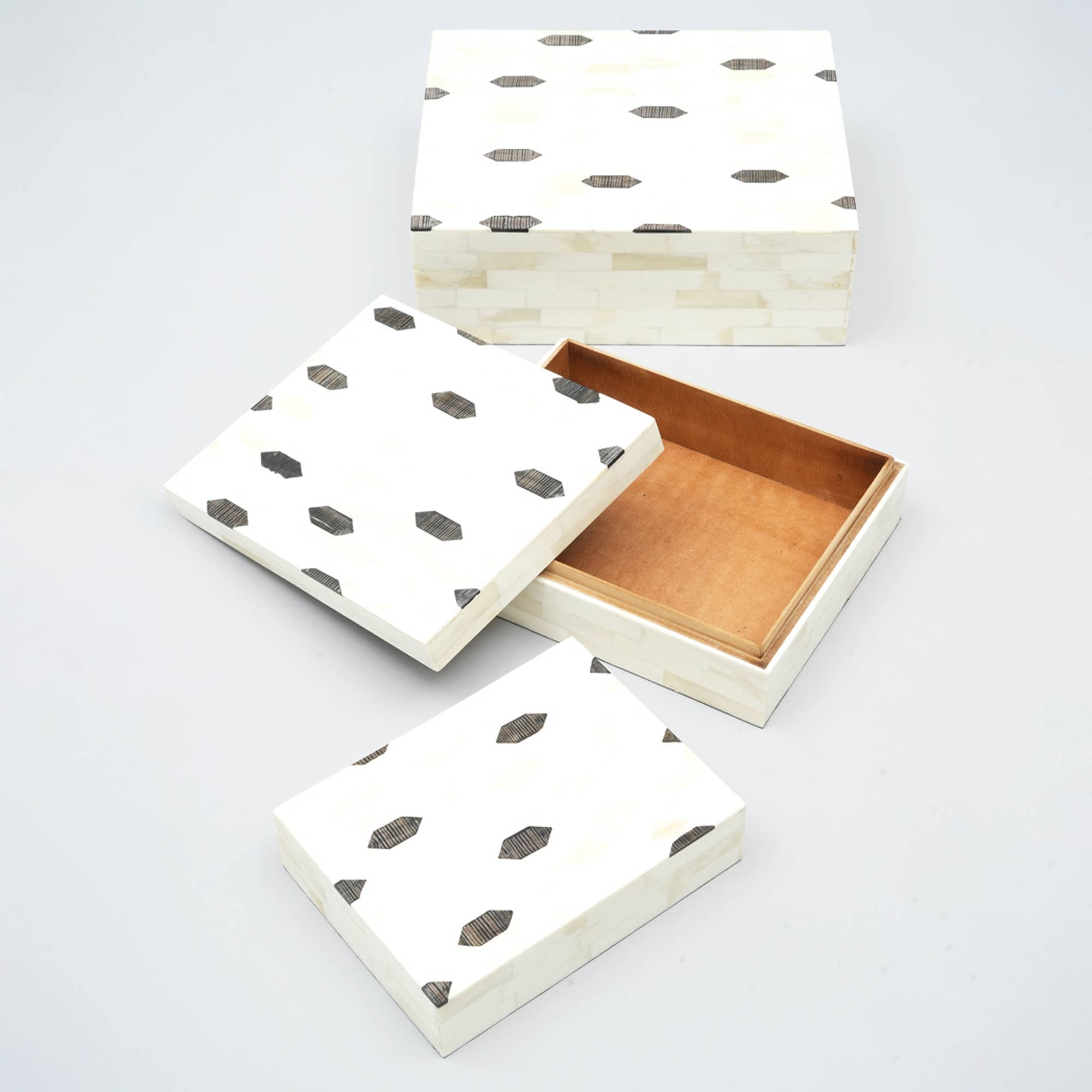 - Set of 3 boxes featuring a striking black and white geometric pattern