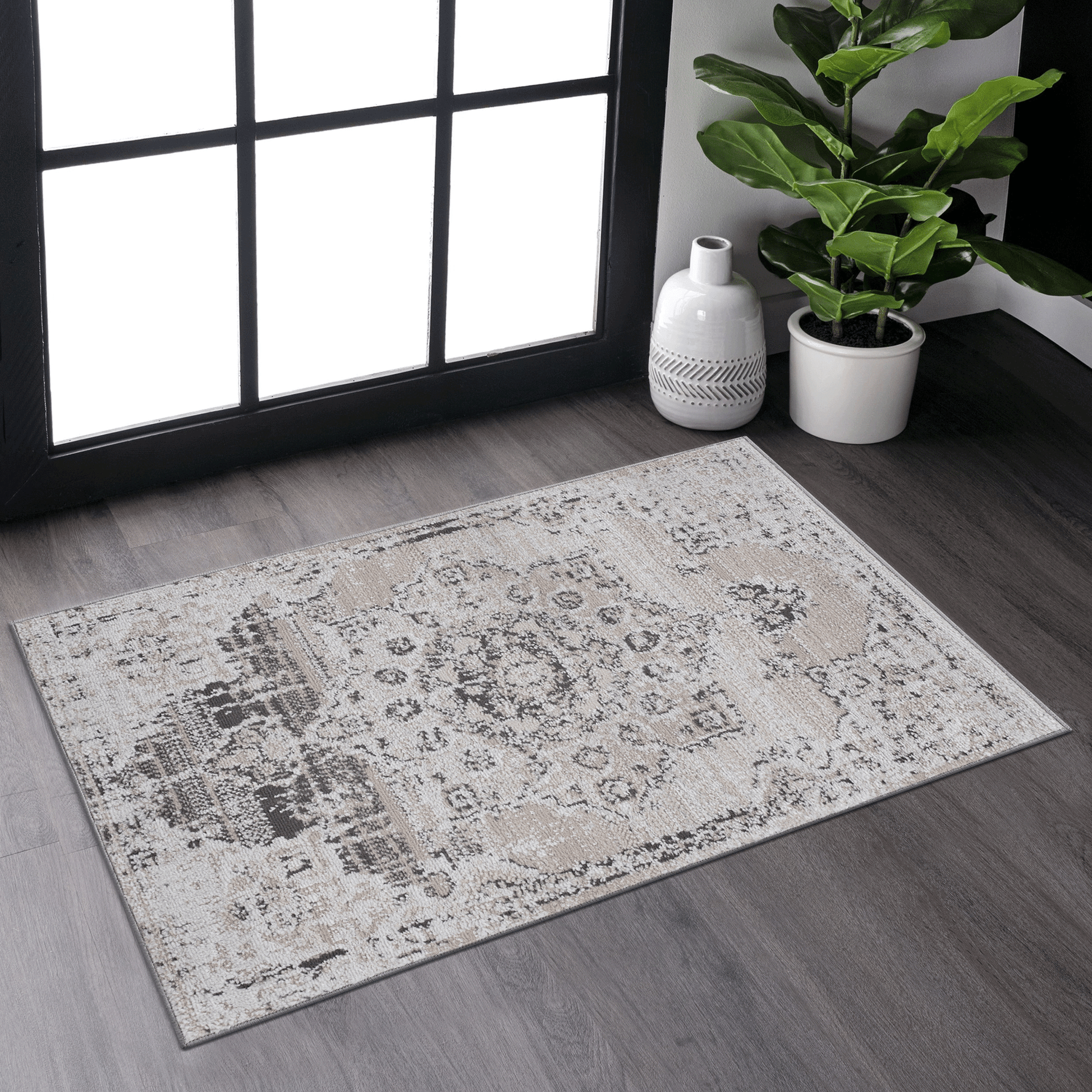 PAYAS Collection 2X3 Cream / Beige / Medallion Doormat Rug