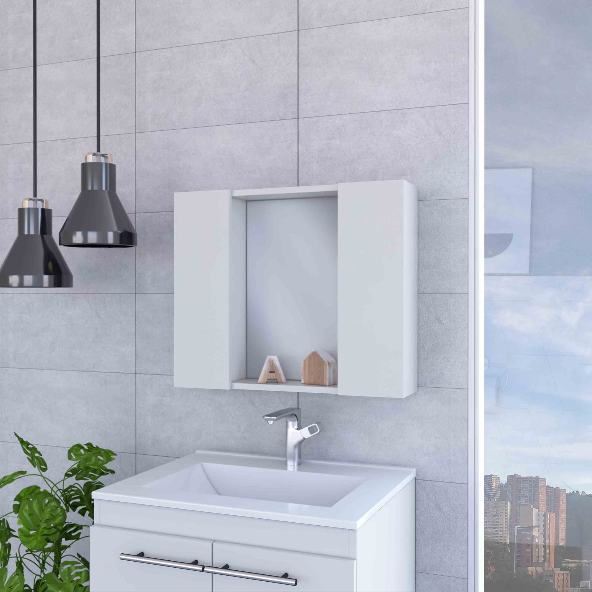 Draco Medicine Cabinet, Mirror, Double Door, One External Shelf