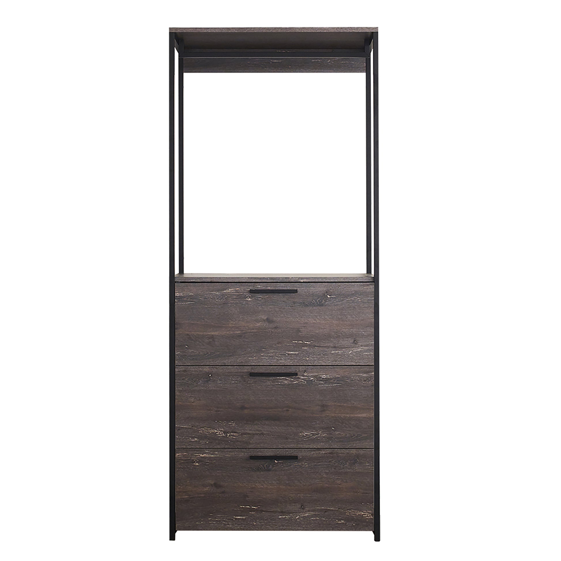 Monica Rustic Gray Walk-in Closet with Three Drawers and One Shelf, Solid Wood