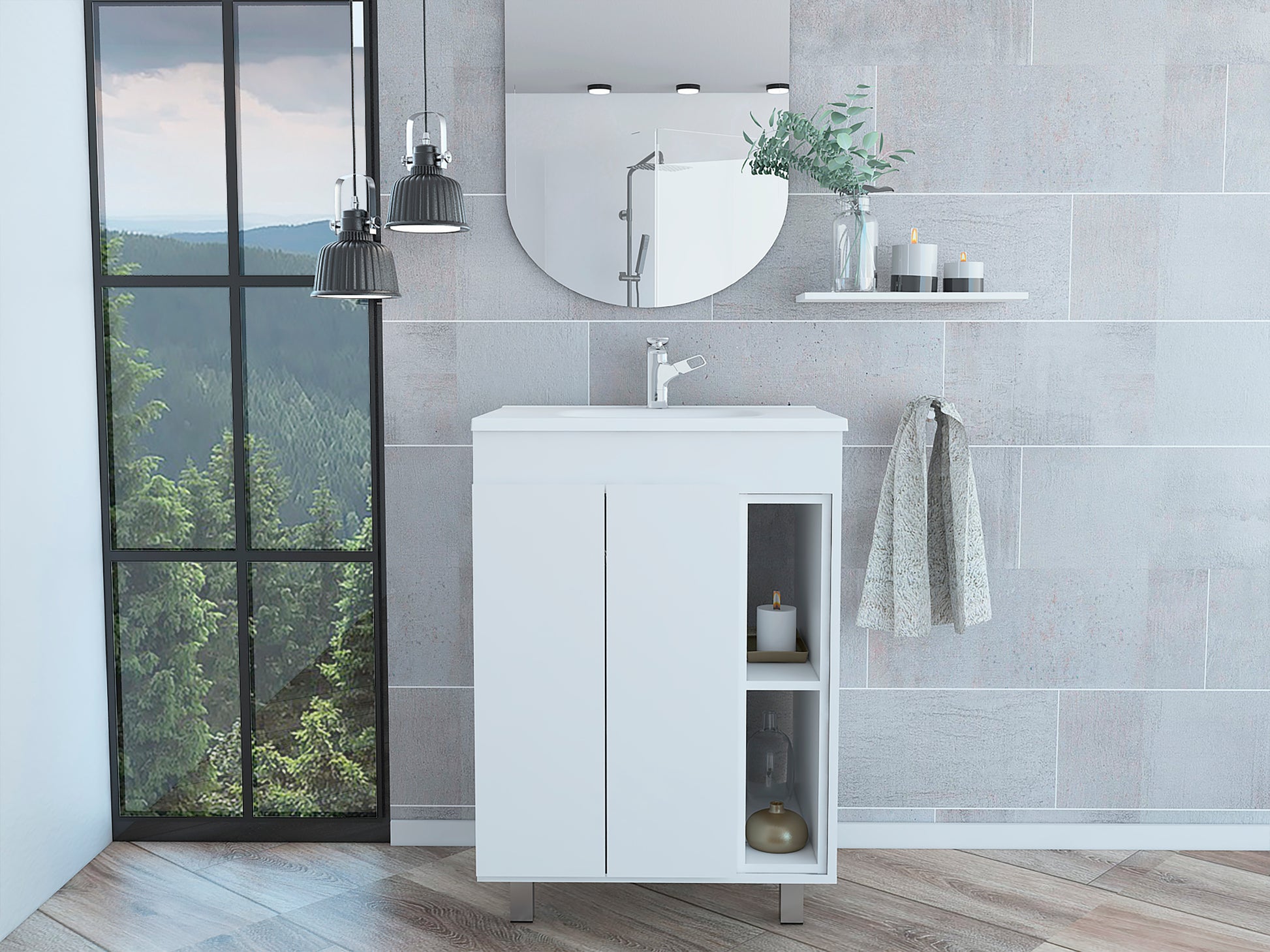 24' Meka Vanity, Two External Shelves, Double Door Cabinet -White