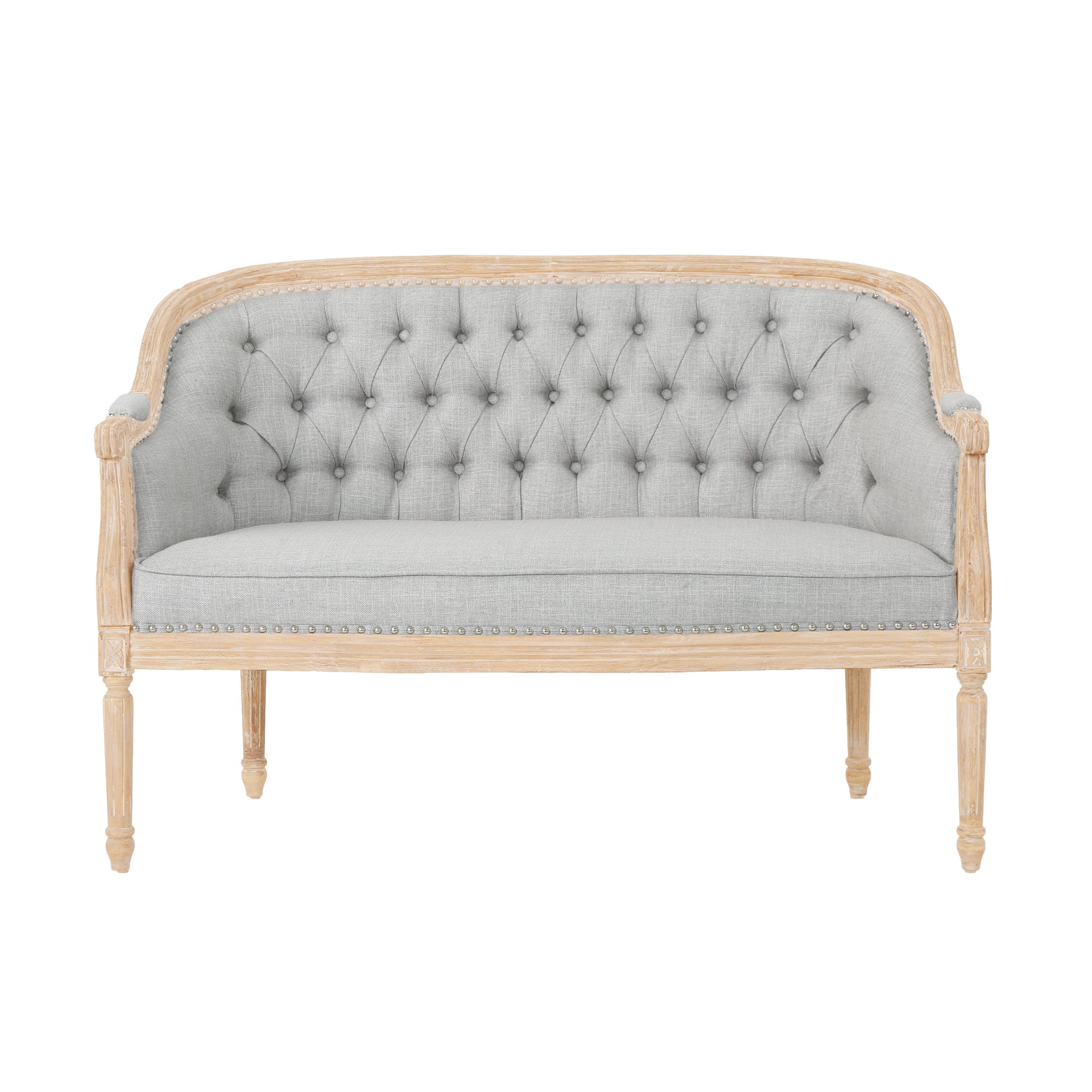 - Exquisite style, overflowing charm, and exceeding comfort. Our beautifully tufted loveseat has it all. This piece features old-world elements such as deep button tufting, gracefully scrolled arms, and stunning nailhead accents for a wonderful French country aesthetic.