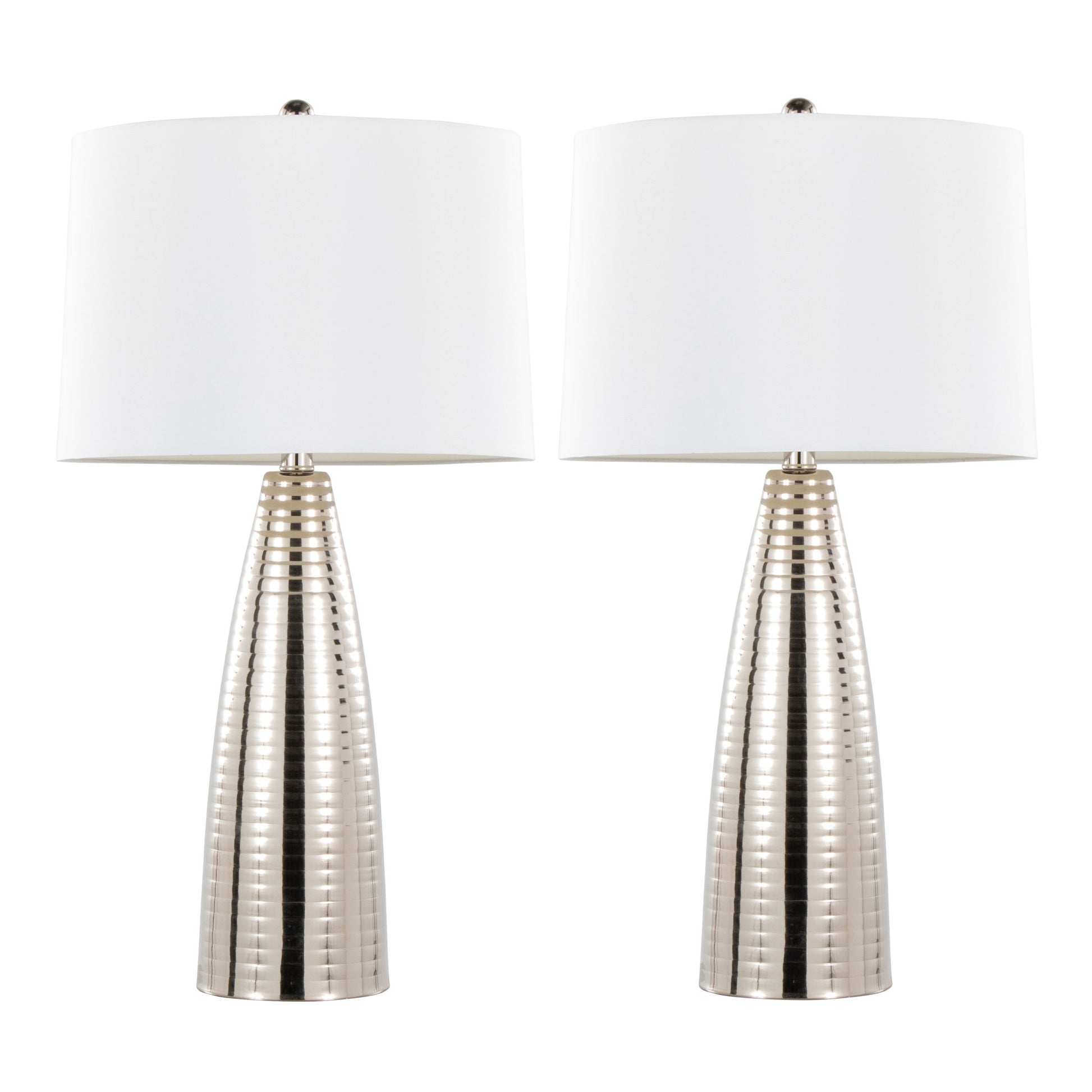 Maya 27' Contemporary Metal Table Lamp in Polished Nickel with White Linen Shade from Grandview Gallery by LumiSource - Set of 2