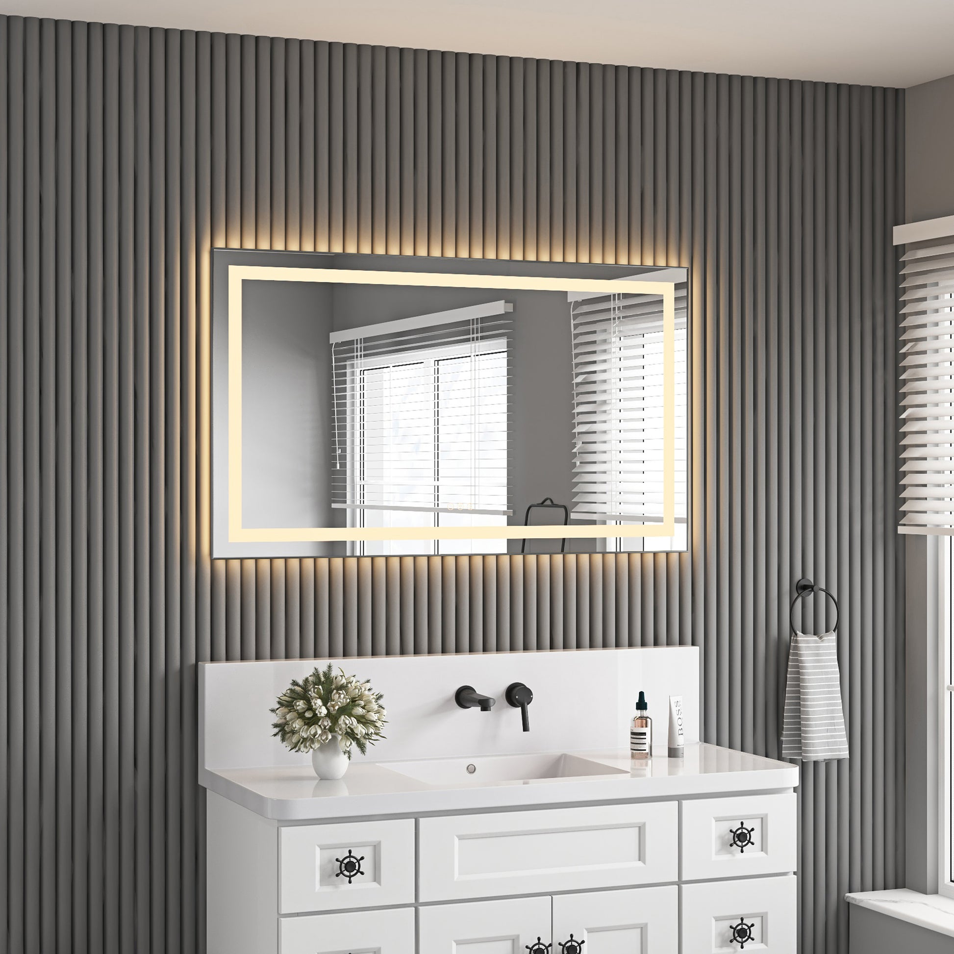 48' x 28' LED Bathroom Mirror with Front and Backlight, Wall Mounted Vanity Mirror with Aluminum Frame, Anti-Fog, Memory, 3 Colors, Stepless Dimmable