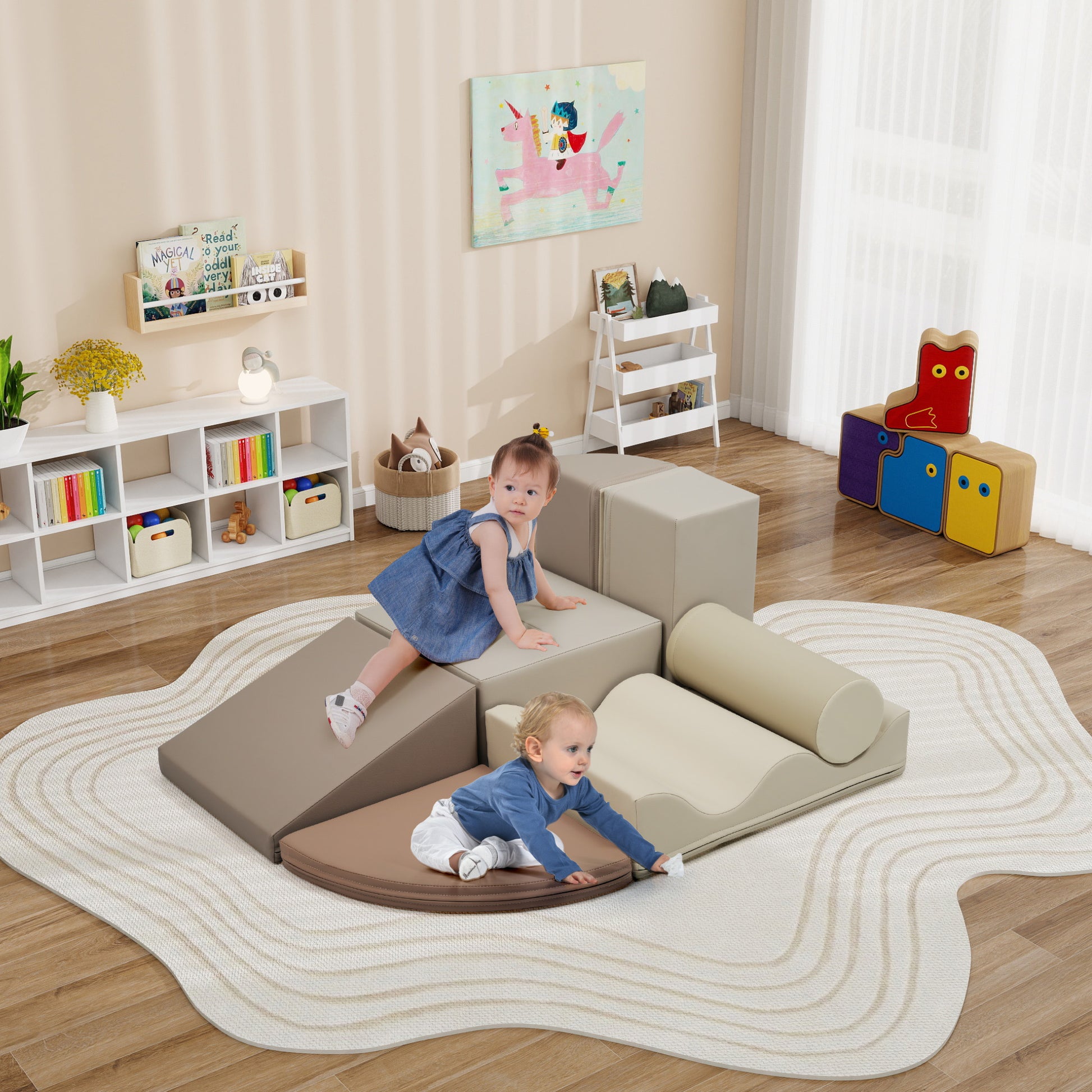 7-Piece Indoor Climbing Foam for Kids, Soft PU Toddler Climbing Toys, Indoor Climb and Crawl Activity Play Set