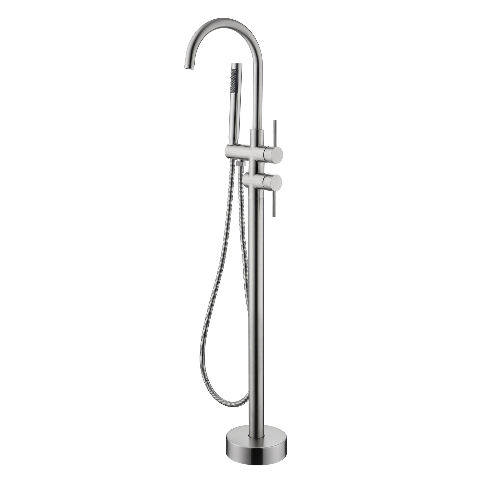 Floor Mounted Tub Faucet High Flow Freestanding Tub Filler Faucet with Handheld Shower Head and Swivel Spout
