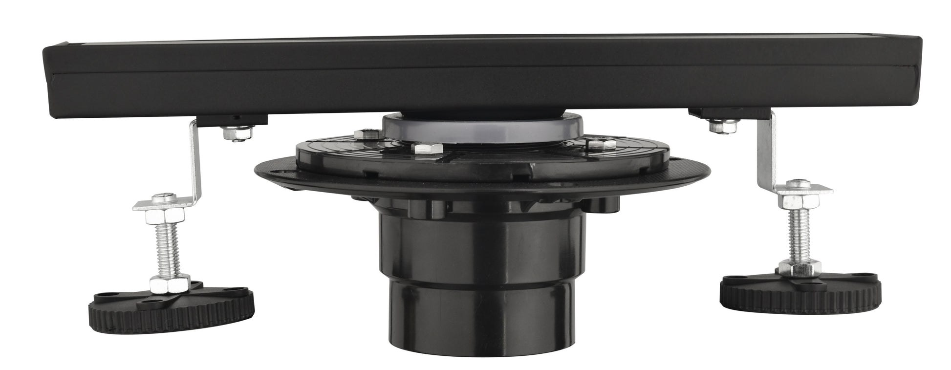 - Adjustable leveling feet support the trough. Removable grille and hair filter make it easy to clean.