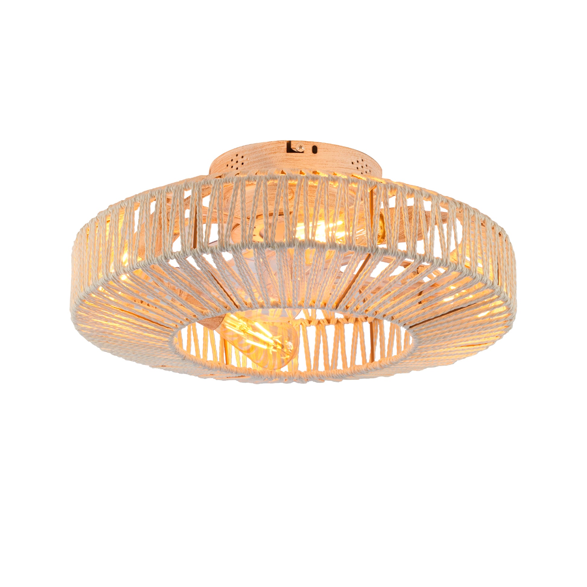- 【Farmhouse Ceiling Fan with Lights】20in Matte White + Natural Rope finished metal cage ceiling fan light with 7 blades and 4 E26 light bases (Not bulbs included), perfectly decorate industrial, vintage, rustic and modern style homes, such as bedroom, living room, dining room, hallway, etc.