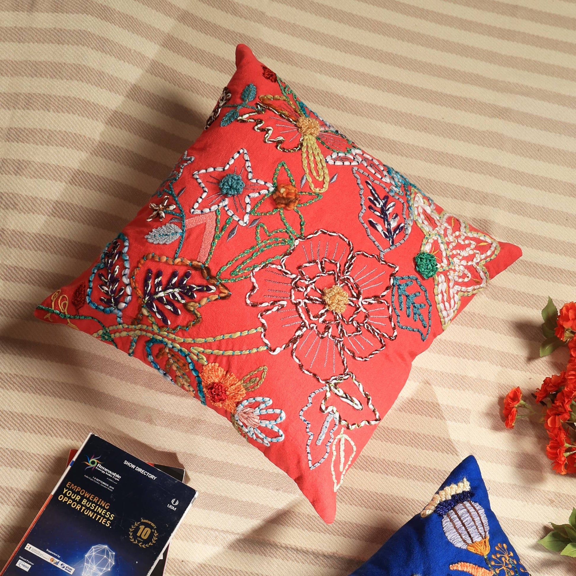 Cotton Embroidered Decor Cushion-Pink-18 X 18 Inch