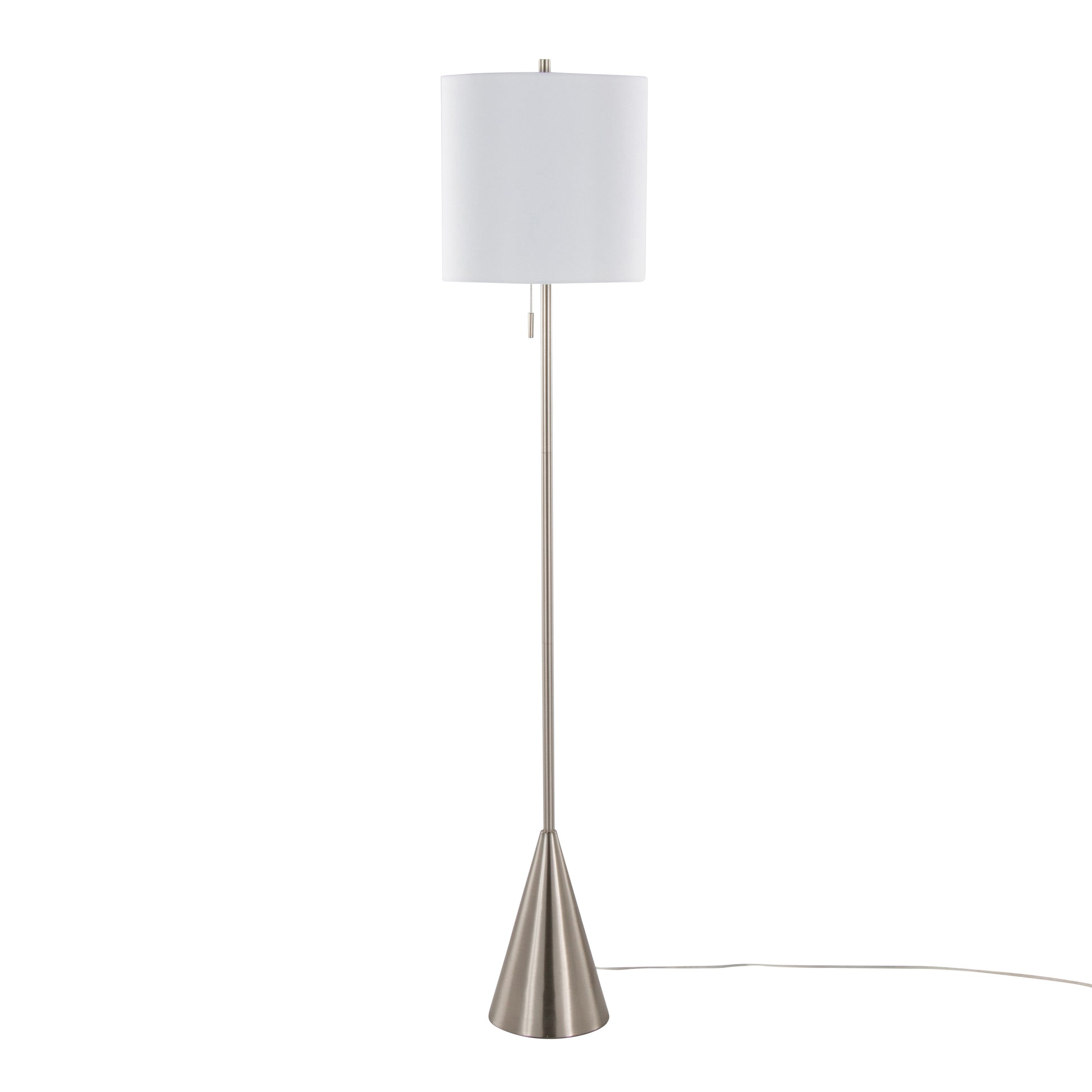 Cone 64' Contemporary Metal Floor Lamp in Brushed Nickel with White Linen Shade from Grandview Gallery by LumiSource
