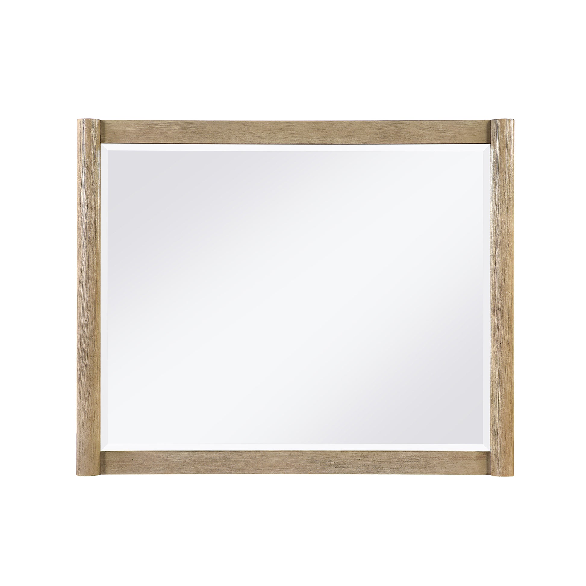 Sarai Brown Mirror with Sleek Wood Frame and Rounded Sides, Brown Rubber Wood, 47 x 38 inches