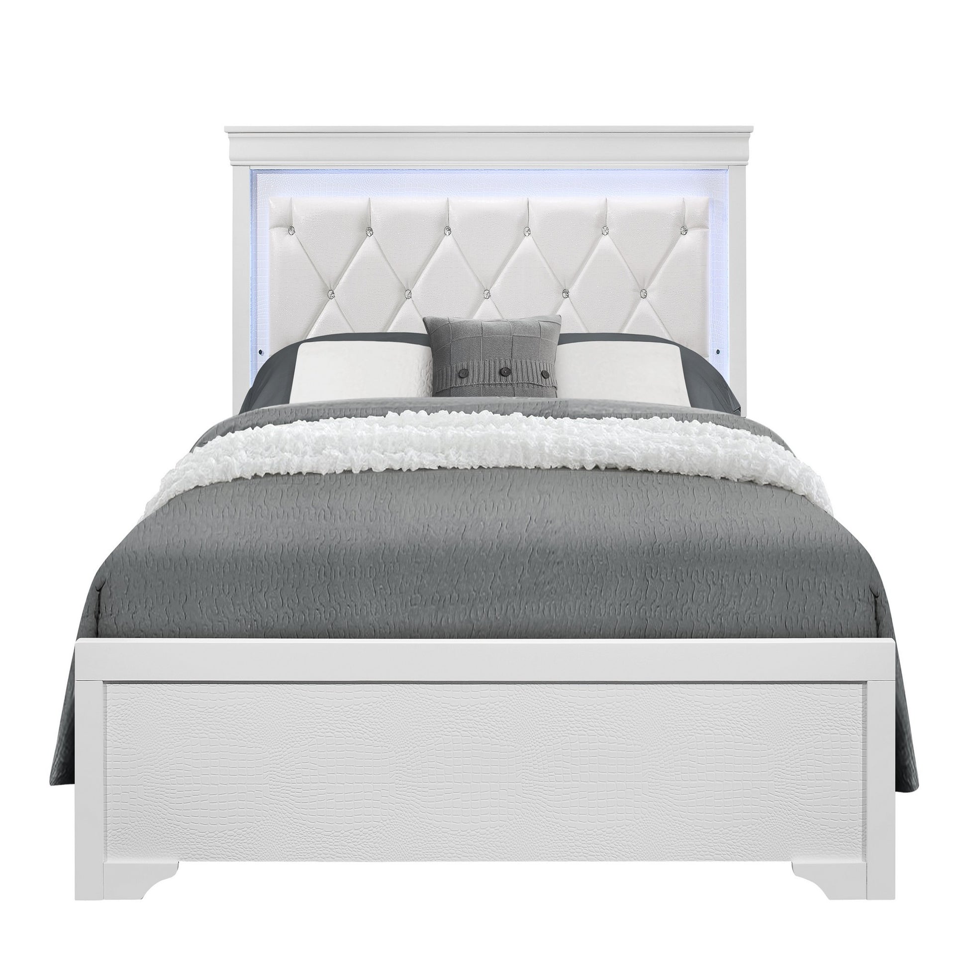 Shaker Style White Queen Bedroom Set with Crystal Inspired Tufted Headboard and LED Lighting