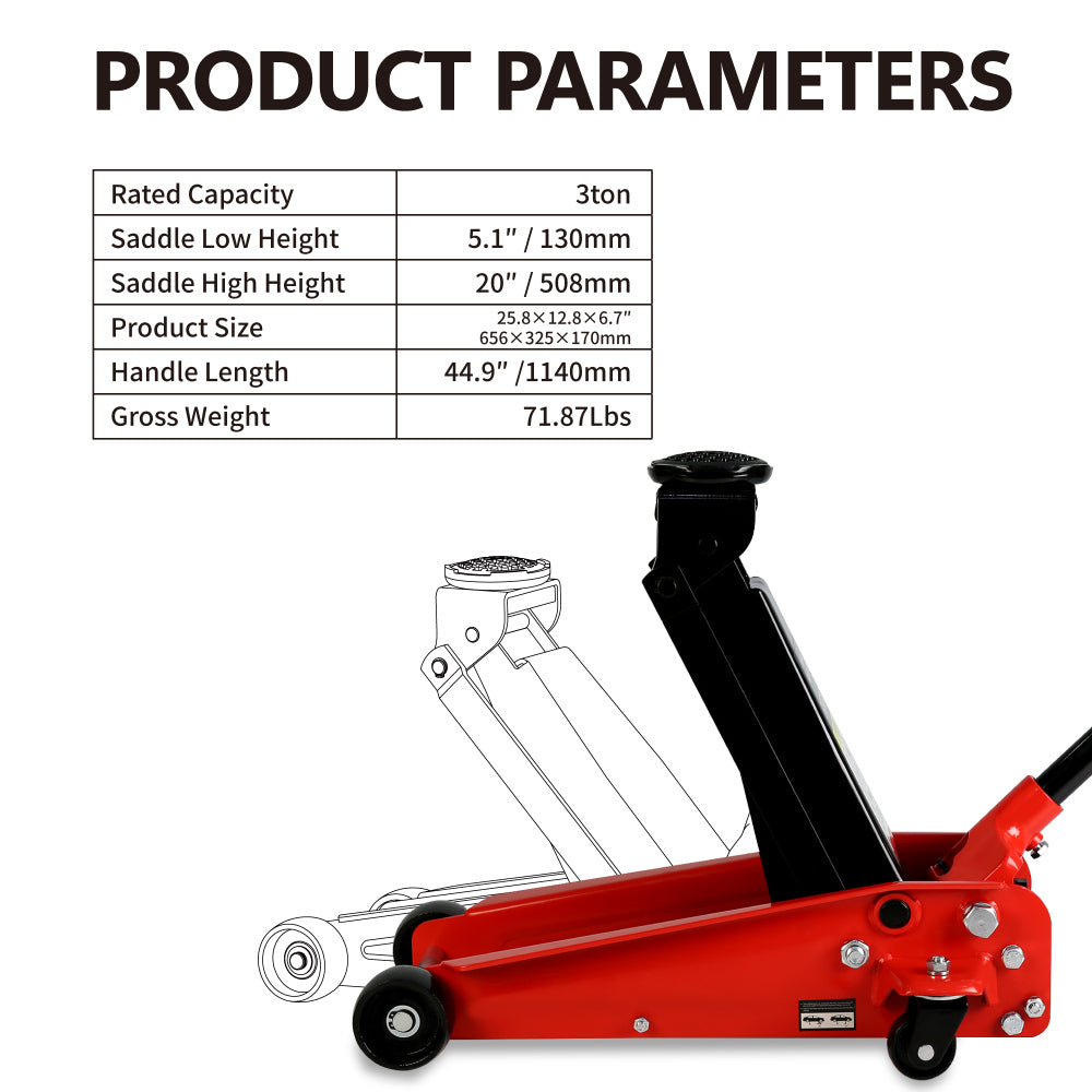 - Features a 3 ton (6,000 b) capacity with a minimum lifting height of 5.1" and a maximum height of 20"